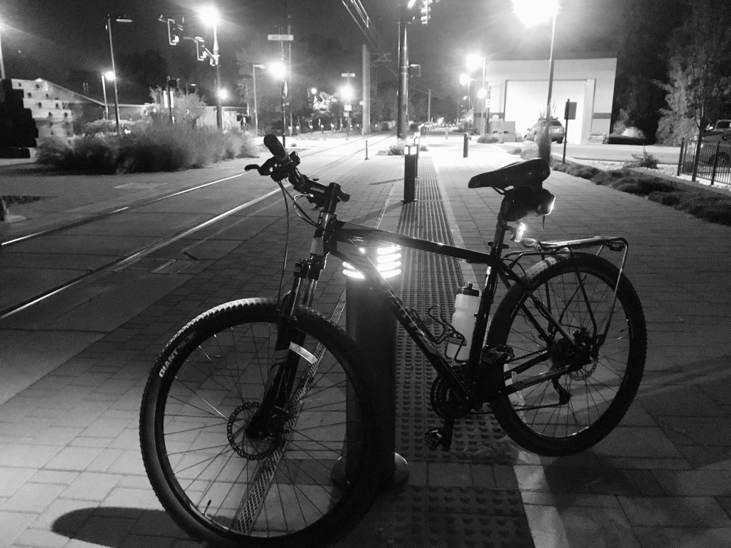 Getting home is a little more challenging, only because I’m riding at night and things can get crazier when the sun goes down. The ride is only 4.75 miles home, with 265 feet of ascent and 236 feet of descent. The most important consideration is being visible. I wear a bright, reflective jacket, an illuminated ankle band, two rear riding lights, a front light and a headlamp. I look ridiculous but at least I feel safe.